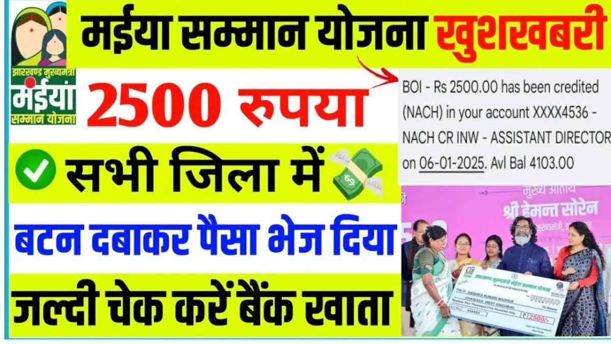 मंईयां सम्मान योजना की शुरुआत अगस्त 2024 में झारखंड सरकार द्वारा की गई थी। प्रारंभ में, इस योजना के तहत महिलाओं को ₹1,000 प्रति माह की सहायता राशि दी जाती थी। लेकिन, जनवरी 2025 से यह राशि बढ़ाकर ₹2,500 प्रति माह कर दी गई है, जिससे राज्य की लगभग 58 लाख महिलाएं लाभान्वित हो रही हैं।